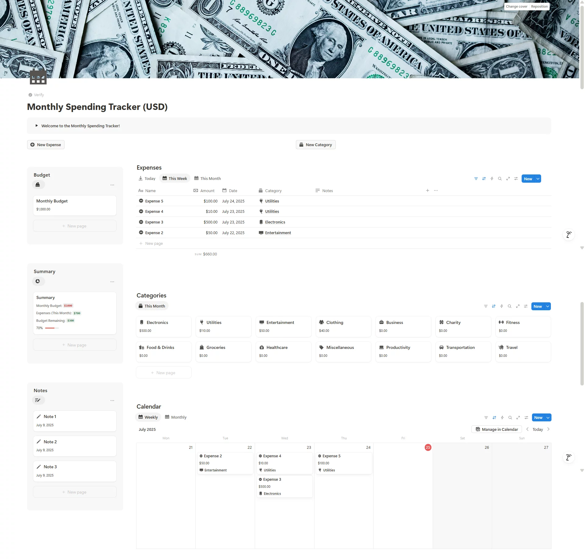 A free, minimalist Notion template to track daily expenses in under 5 minutes. Categorize spending, see budget vs actual, and build lasting money habits — without spreadsheets or complex apps.